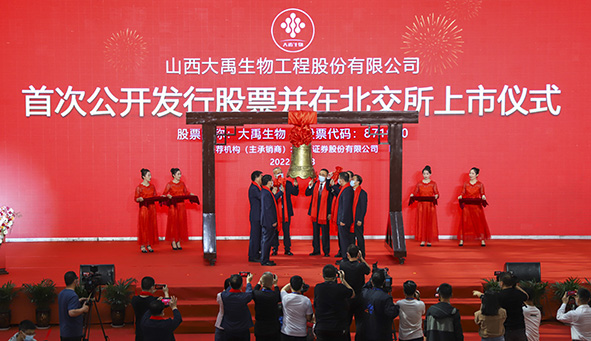 2022年5月18日,隨著開市鐘聲鳴響,山西大禹生物工程股份有限公司(股票代碼:871970)在北京證券交易所成功上市。
